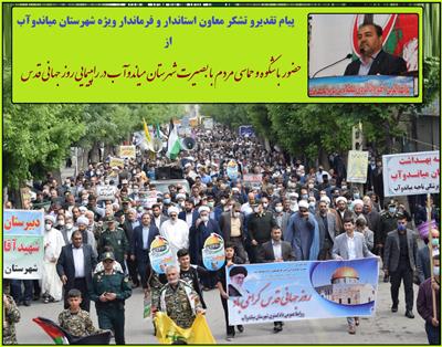 تقدی فرماندار میاندوآب از حضور باشکوه مردم در راهپیمایی روز قدس