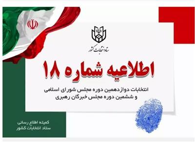 اطلاعیه شماره 18 ستاد انتخابات