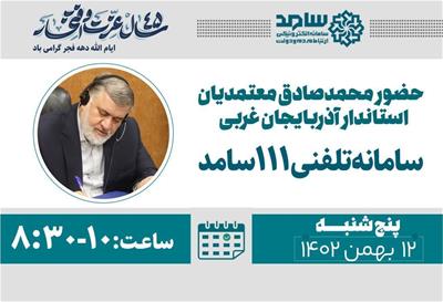 🔹 حضور استاندار آذربایجان غربى در سامانه ارتباط مردم و دولت (سامد) ١١١ - پنجشنبه 12 بهمن از ساعت 8:30 الی 10 صبح