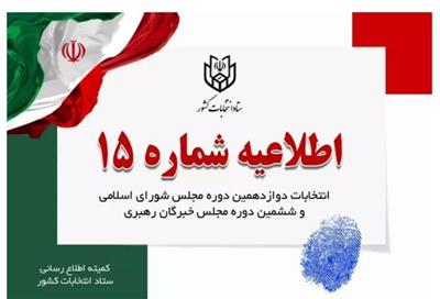 اطلاعیه شماره 15 ستاد انتخابات کشور