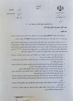 با حکم وزیر کشور ،با پیشنهاد استاندار محترم و نظر به تعهد ، شایستگی ،تجارب علمی و عملی جناب اقای #محمدرضارضایی حکم ایشان از طرف وزیر کشور بعنوان فرماندار ویژه میاندوآب به مدت چهار سال صادر شد و 8 ماموریت اصلی ازطرف وزیر کشور به ایشان ابلاغ گردید.